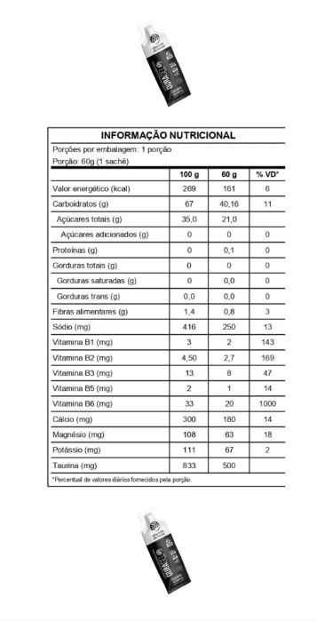 Água purificada, açúcar demerara, isomaltulose (Palatinose TM), café filtrado, D-ribose, taurina, citrato de sódio, carboximetilcelulose, cálcio citrato malato, ácido ascórbico, cafeína anidra, dimagnésio malato, citrato de potássio, sorbato de potássio, benzoato de potássio, piridoxina, nicotinamida, riboflavina, tiamina, pantotenato de cálcio. NÃO CONTÉM GLÚTEN.NÃO CONTÉM LACTOSE.